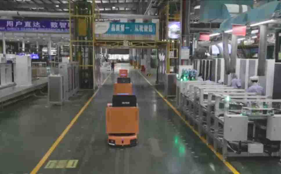 为车载冰箱物流配送打造的智能解决方案,,,包含产中物流通过潜伏举升AMR搬运至线边,,产后成品物流智能仓储,,流程包含产中物流智能齐套入库,,线边安灯叫料AMR智能配送至线边,,,成品入库、、出库,,通过无人堆高车机器人,,,智能仓储管理替代人工作业管理,,,实现更高存储、、更高效率、、、、更具柔性化的解决方案。。